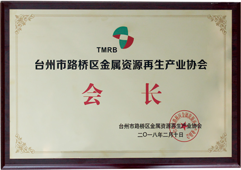 • President of metal resources regeneration industry association of Luqiao District, Taizhou City